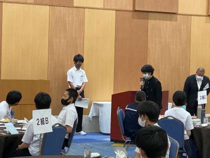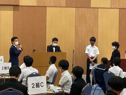 3F光耀の間にて入館式を行い、生徒代表あいさつとホテルの職員の方からあいさつがありました。