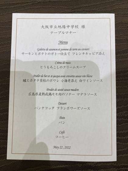 「鱸とホタテ貝柱のポワレ 小海老添え 白ワインソース」