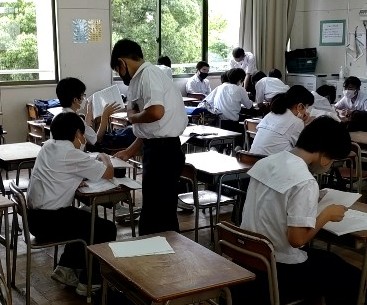 期末テスト1日目。教科書やノートを見返して、直前の確認をしています。