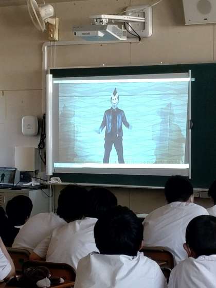 午後からは、5限目にイオの会と図書部、吹奏楽部による映像発表、6限目には2年生による学年映像劇『SING〜旭陽中ver.77th〜』でした。