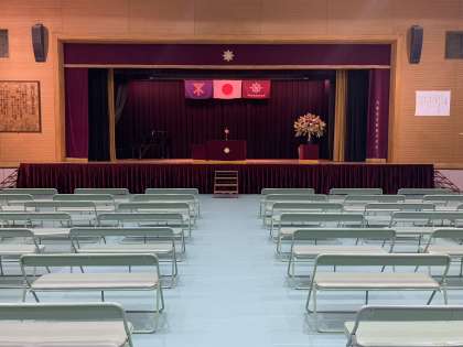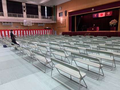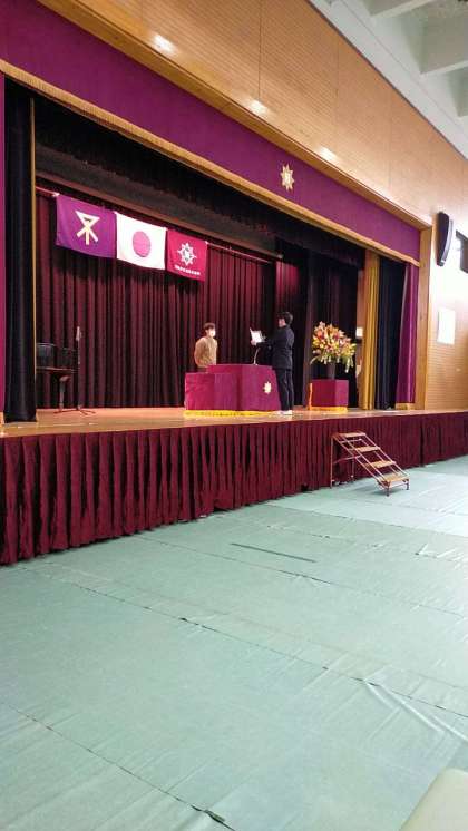 明日14日の卒業式に向けて、本日の午前中に予行、午後に会場準備を行い、送辞答辞の練習も行いました。午前中の予行では明日の本番に備え、式中の所作や入退場の確認等を行いました。