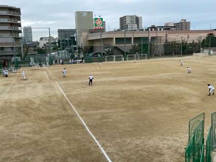 運動場では野球が、体育館ではバレーボール部が練習試合を行っております。