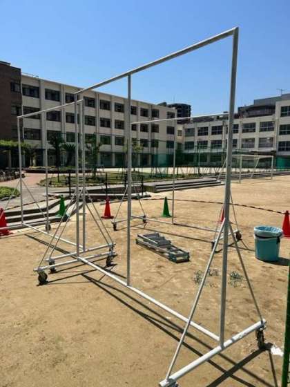 先週に引き続き、管理作業員さんが、防球ネットの補修作業をおこなっています。