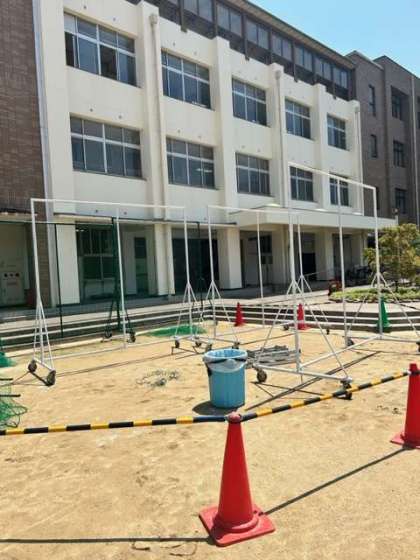 劣化の激しかったネットの取り換え作業をしていただいております。