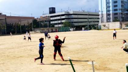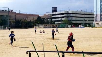 元気な掛け声をかけながら、ソフトボール部が練習しています。