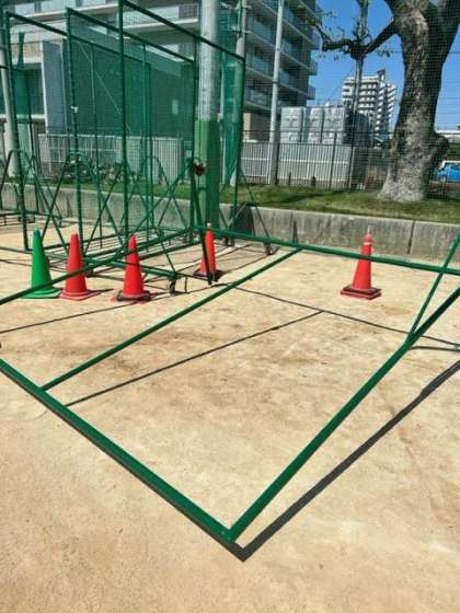 1枚目の写真の防球ネットが、2枚目のようにきれい改修されます。