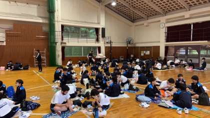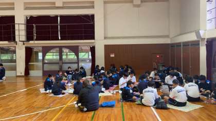 クラスごとに集まって、みんな楽しく食べています!
