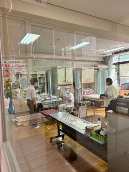 保健室の先生の工夫によって、検診がスムーズに進んでいます。