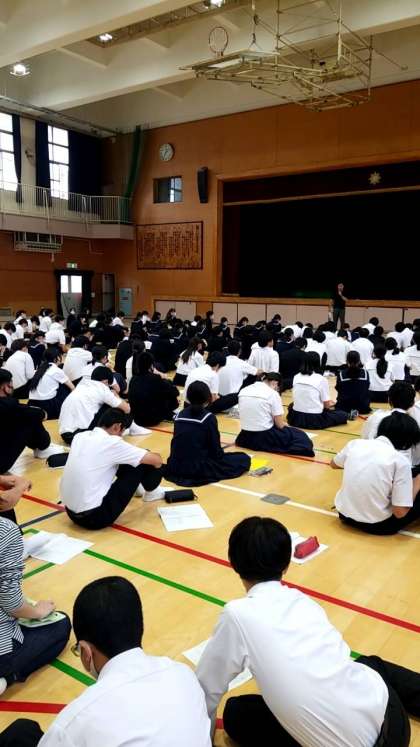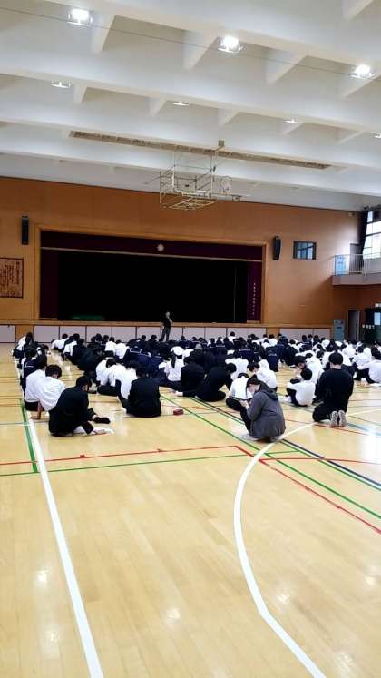 3年生は、体育館にて修学旅行に向けた取り組みをおこなっています。