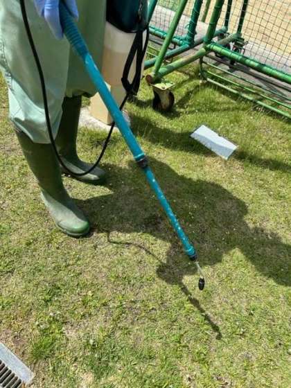 散布している薬剤は、芝生以外の雑草を枯らせる効果があるそうです。