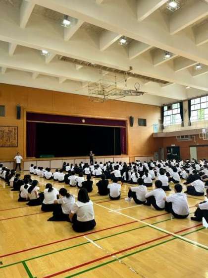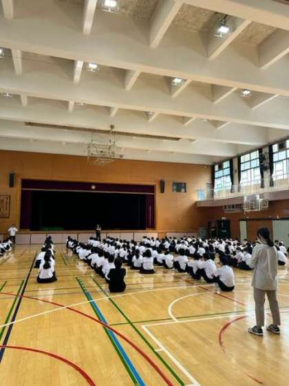 3年生の出発式後に、体育館では1年生が学年集会をおこないました。