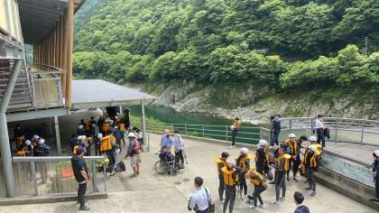 ラフティング班はウェットスーツに着替えて、準備をしています。