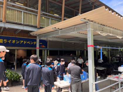 ラフティングを終えた1.2.3組も昼食のカレーを堪能しております。
