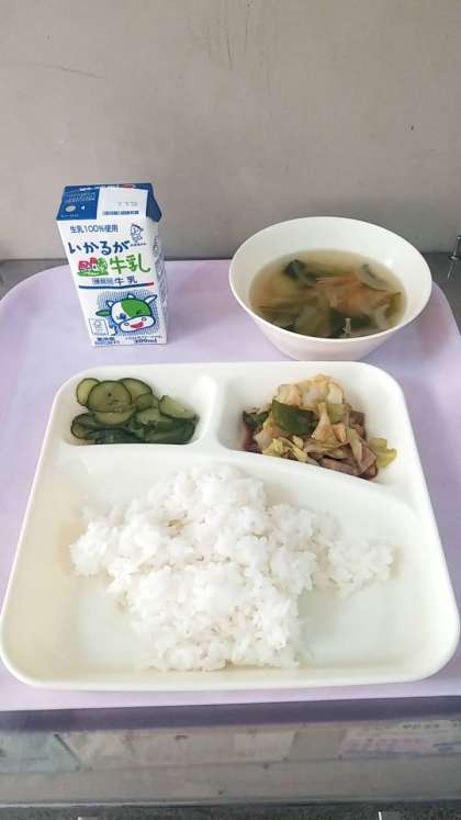 今日の給食では、豚肉(ばら)をゆでてから、ほかの材料と一緒に炒めています。
