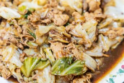 中国料理では、材料を煮たあとに鍋にもどし、いためて仕上げることを「回す鍋」と書いて「回鍋(ホイコウ)」といいます。