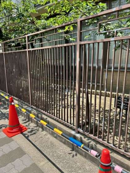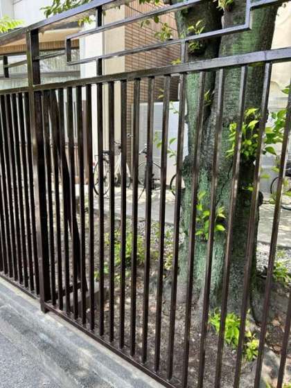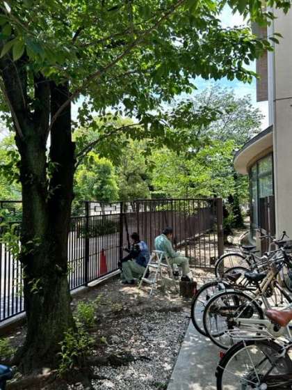 管理作業員さんが、外柵の塗り替え作業をおこなっています。