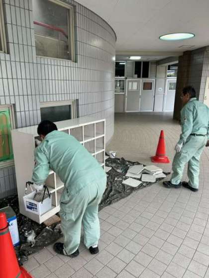 本日も管理作業員さんが、靴箱ロッカーの改修作業をおこなっています。