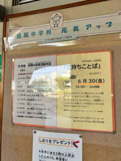 学校図書館では月に1回、読書に関連した活動を行っています。