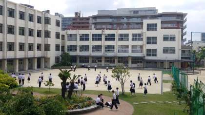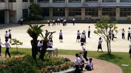 今朝の晴天から曇り空にかわりましたが、旭陽中学校のみなさんは、元気にグランドで昼休みを楽しんでいます。