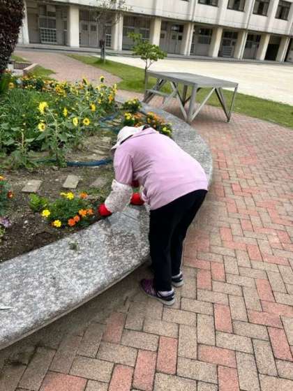 ボランティアの方々のおかげで、旭陽中学校の草花がきれいに維持されています。