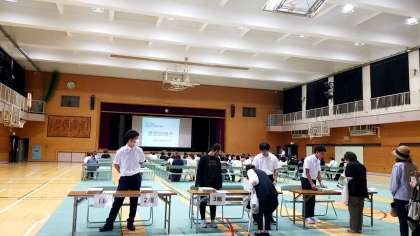 本日、15時30分より体育館にて、進路説明会を開催しました。