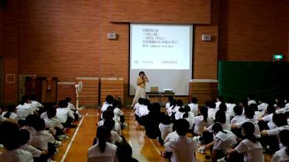 格技室では、高己蓮ソンセンニムから、「豊かな社会」の実現のために、お互いを知り、ちがいに気づき、お互いを認め、尊重するサイクルついてご講話していただきました。