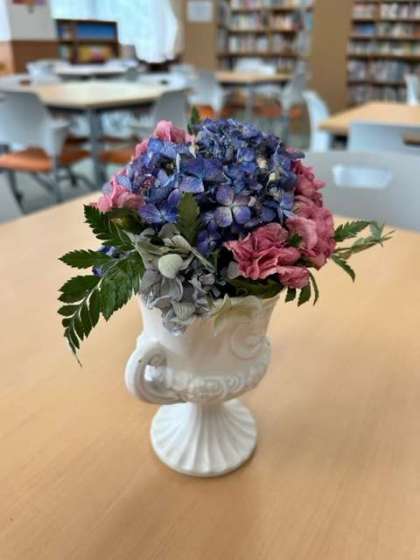 校内で咲いていた花々をドライフラワーにアレンジしていただいています。