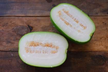 夏が旬の野菜ですが、果実を切らずに冷暗所に置いておくと、冬まで保存できることから、「冬」の「瓜」と書いて「冬瓜(とうがん)」という名前が付けられました。