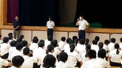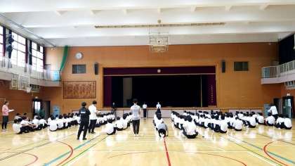 体育館では、3年生が学年集会をおこないました。