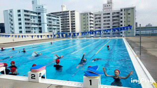 プールでは、背泳ぎの練習をしています。