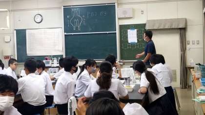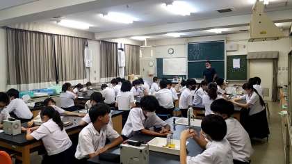 理科室では、実験がおこなわれています。