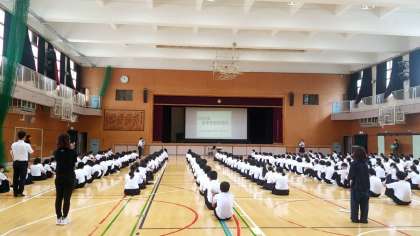 4限目、2年生は体育館にて学年集会をおこないました。
