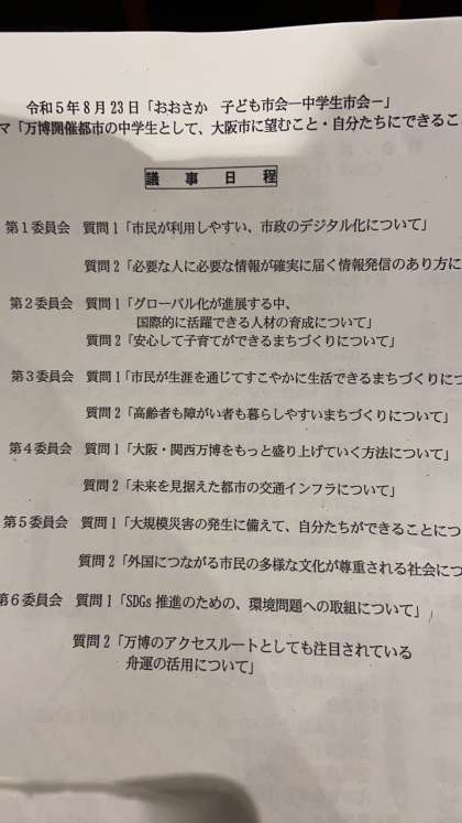 「おおさか 子ども市会ー中学生市会」に、旭陽中学校生徒会より2名の生徒が参加しています。