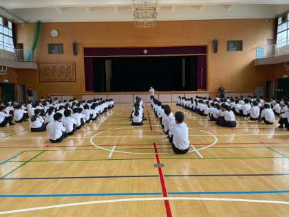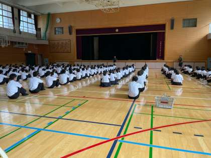 体育館にて、1年生の学年集会がおこなわれました。