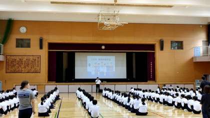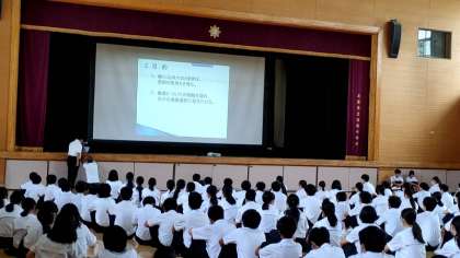 キャリア教育担当の教員から、11月に実施される「職場体験」について説明がありました。