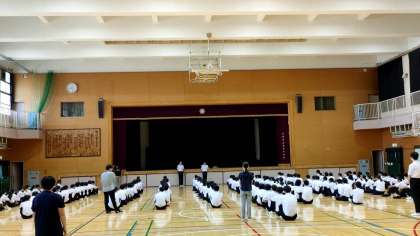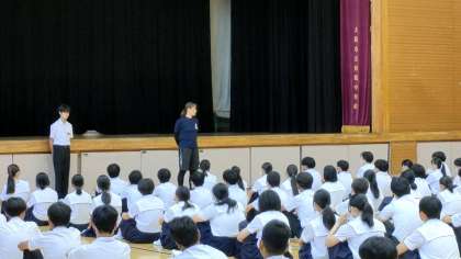 今朝、体育館にて3年生が学年集会をおこないました。