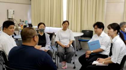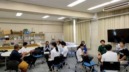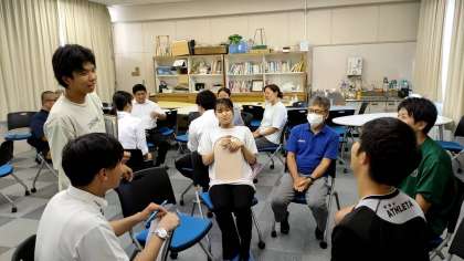 今回の研修会では、「ワールド カフェ方式」を援用し、経験や年数の異なる参加者が、主体的に研修に参加できるように、本校のメンターが工夫を凝らしています。
