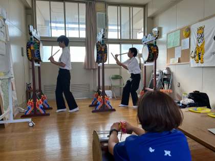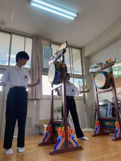 いまは文化祭に向けて両面太鼓やポナに取り組んでいます。