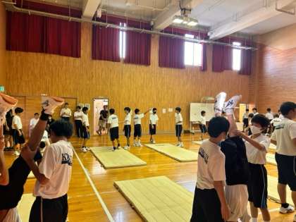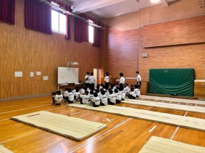 本日、1限目に格技室にて教育実習の研究授業をおこないました。