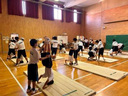 単に反復練習をするのではなく、ペアで教え合いやアドバイスをすることによって学び合いがうまれ、生徒は主体的に器械運動に取り組めています。