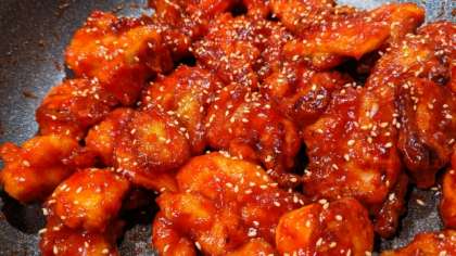 ・ヤンニョムチキンは、油で揚げた鶏肉に「ヤンニョム」という甘辛いたれをからめて作ります。