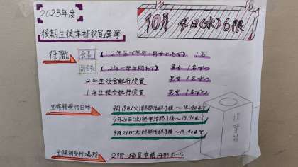 10月4日(水)6限に、2023年度 後期生徒会役員選挙が開催されます。