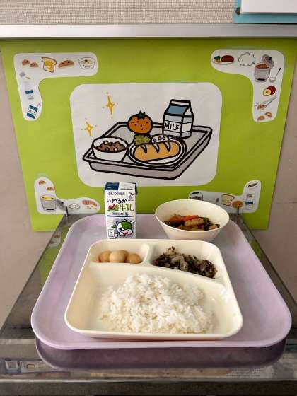 ・今日の給食には、「一口がんもと里芋のみそ煮」と「みたらし団子」が登場します。