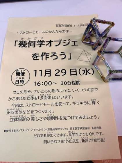 次回11月の読書は「幾何学オブジェを作ろう」を予定しています。