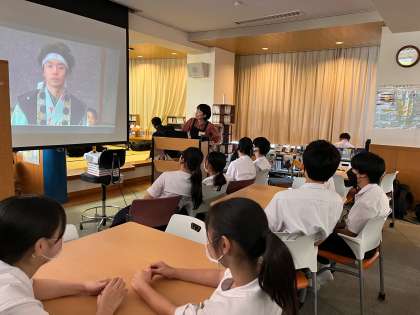 紙芝居で桃太郎の物語をおさらいした後、「昔話法廷」のドラマをダイジェストで視聴しました。