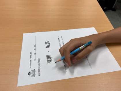 鬼側や村人、お供の動物など色々な立場の、あったかもしれない主張や、桃太郎の背景などを参考に、それぞれが有罪・無罪を判断して意見交換。