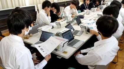 大阪工業大学工学部の田熊隆史様をお招きし、3年生に対して、「studuino:bit を使ったロボット制御」の特別授業をしていただいてます。