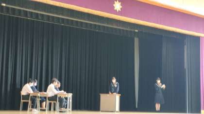 何と前期委員長みなさんが、「一度しかない授業を大切にしよう!!」をテーマに演劇をおこないました。
