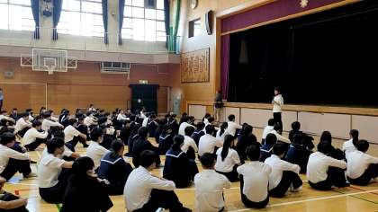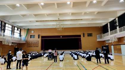 今朝、体育館にて学年集会がおこなわれました。