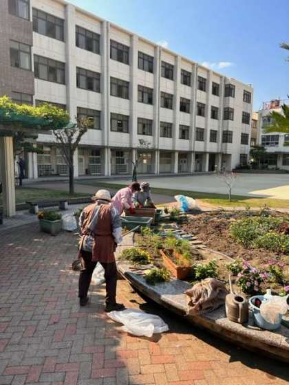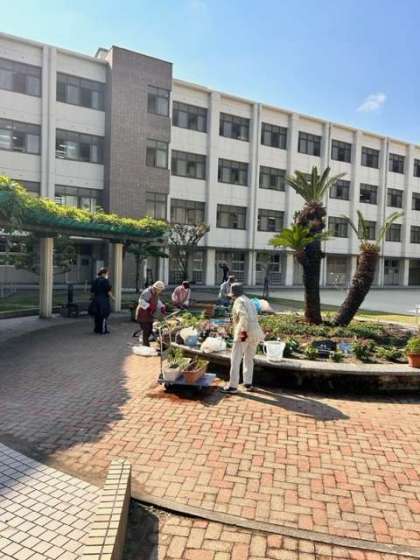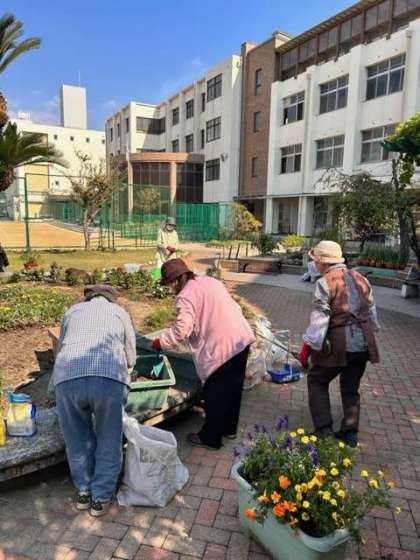 毎週水曜日、学校元気アップ事業のボランティアの方々が中庭にて園芸作業をされています。